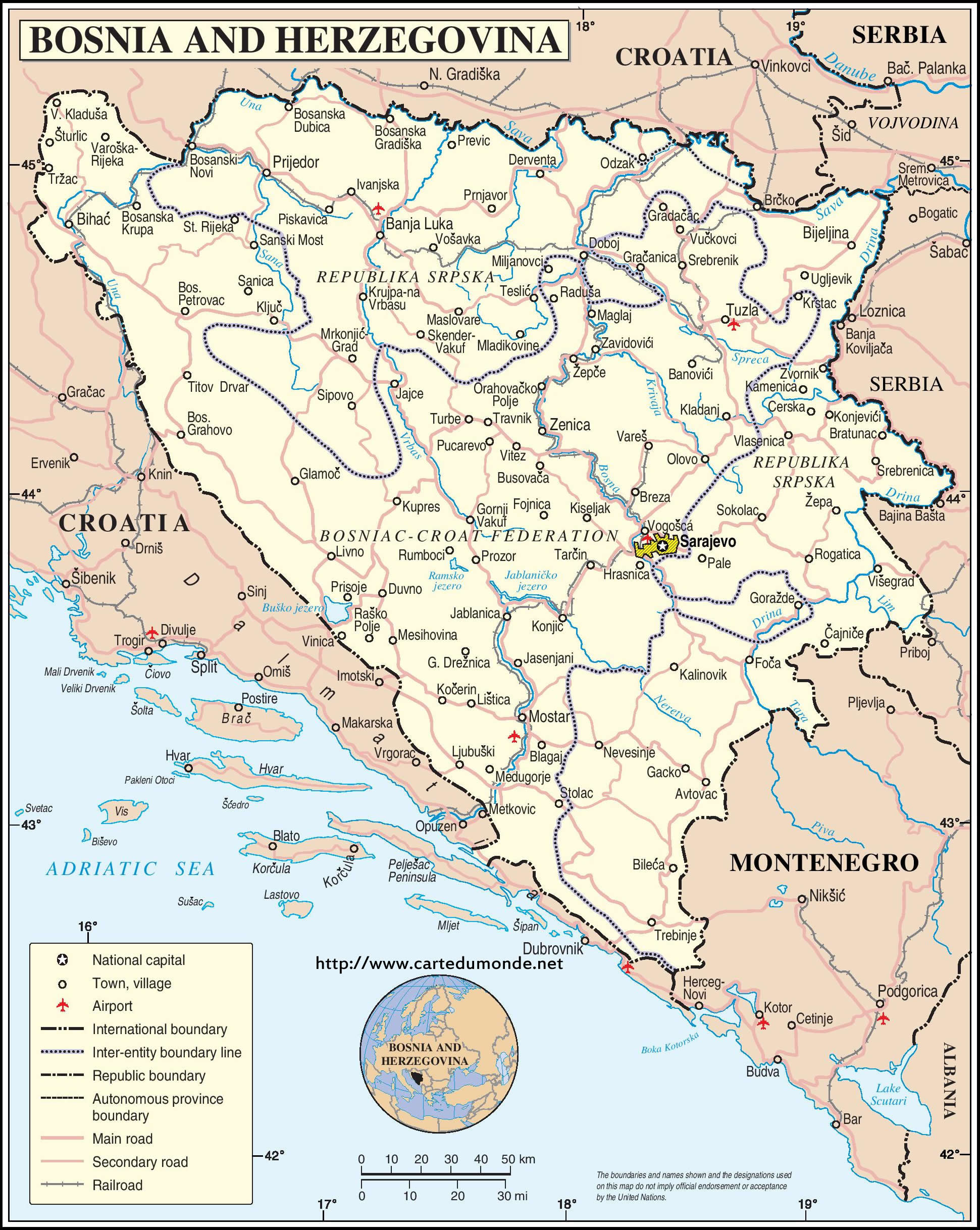 Kaart Bosnië en Herzegovina